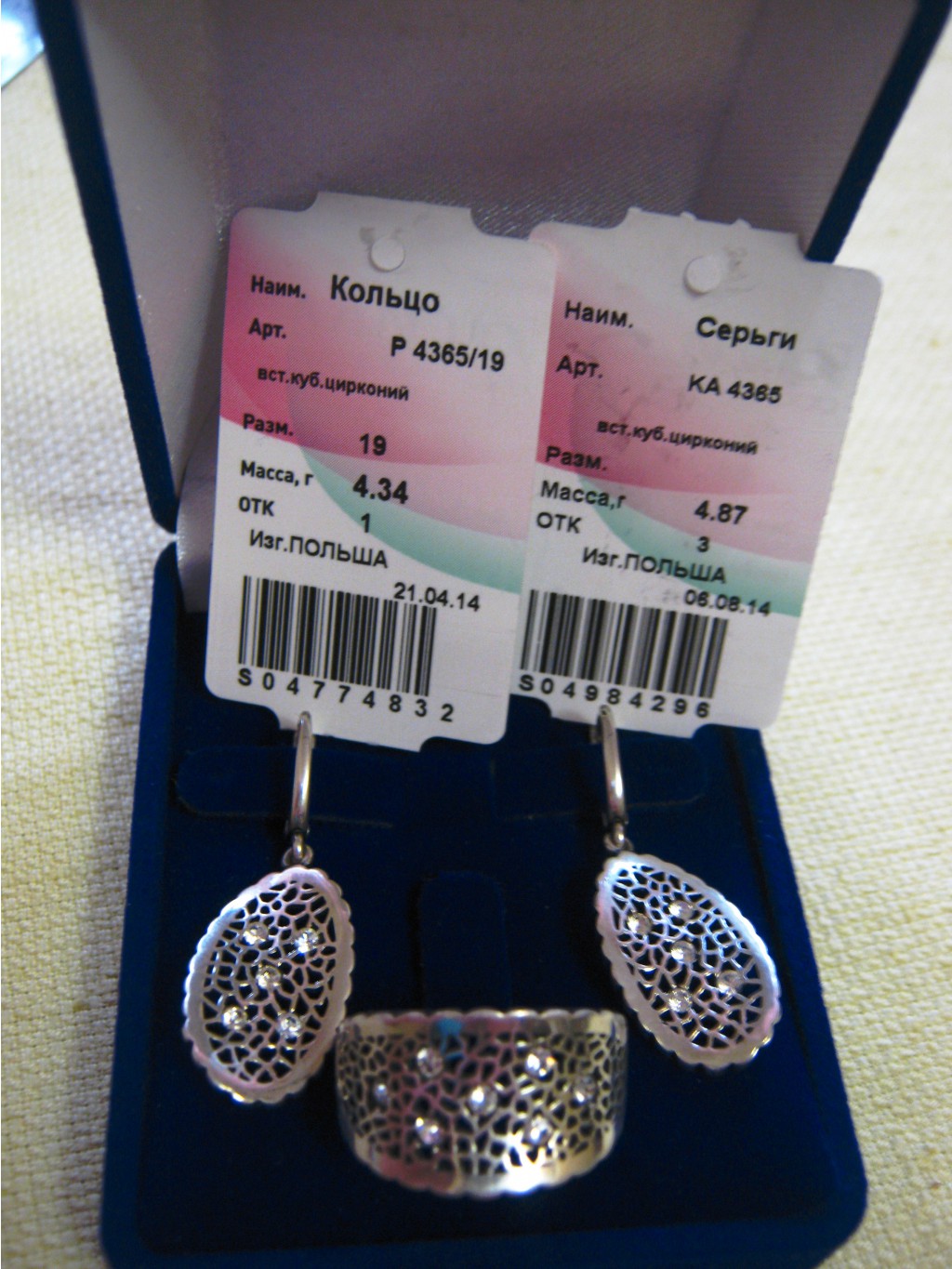 Серьги длина с застежкой 3,6см. вес 4,87гр.х80=390руб.